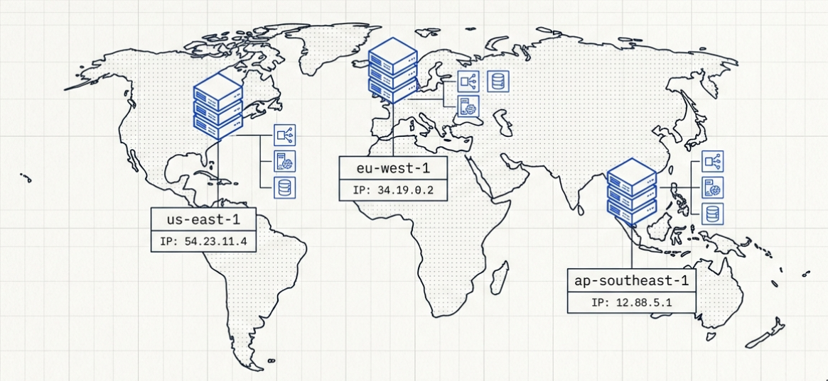 If you do nothing special, DNS just returns a fixed IP - or maybe a set of IPs in a round-robin with no awareness of where the user actually is. Your Singapore users are making round trips to Virginia, taking 200ms+ of latency purely from geography, while ymur Singapore servers sit mostly idle.